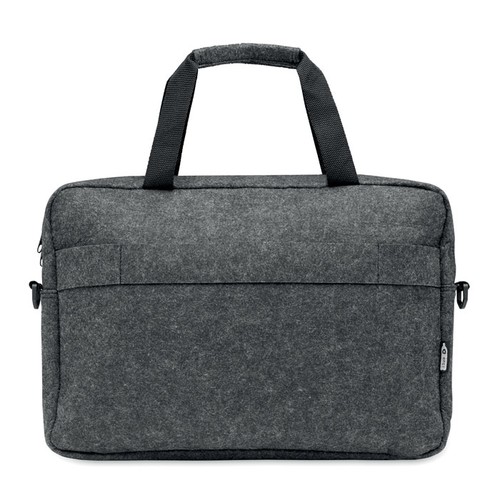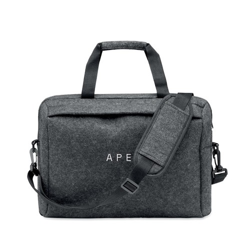 Sac à dos pour ordinateur portable de 15 pouces en feutre RPET comprenant un compartiment interne principal et une poche frontale zippée. Bandoulière détachable et réglable. Passant pour trolley au verso.