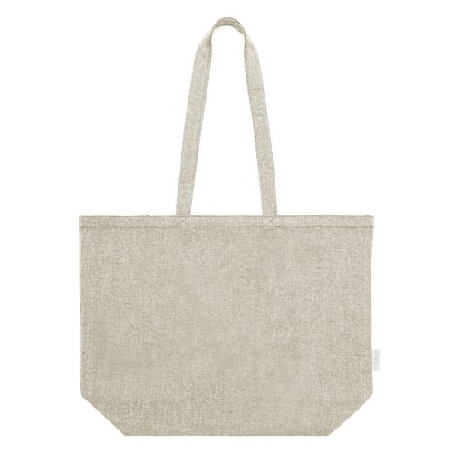 Sac de la ligne Nature, en coton recyclé 140g/m2. Avec une finition cousue et de longues anses renforcées (70 x 2,5 cm). Soufflet sur la base et disponible dans les couleurs naturelles et noires, avec du coton recyclé distinctif sur l’étiquette extérieure. Résistance jusqu’à 6 kg de poids.Certification GRS (Global Recycled Standard / Global Recycling Standard), qui garantit l’origine recyclée du matériau utilisé pour fabriquer le produit