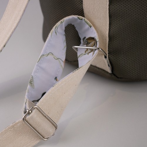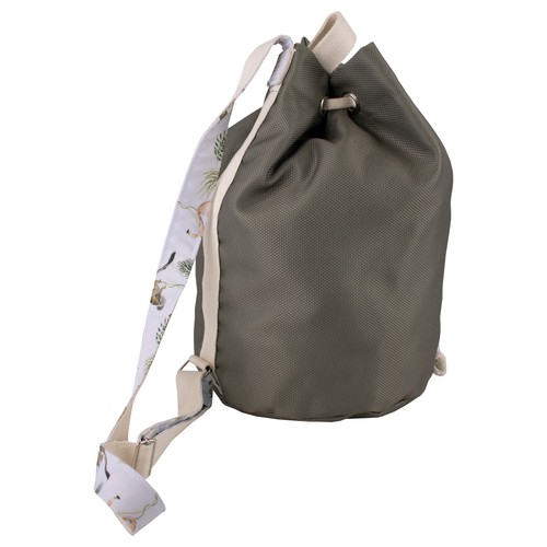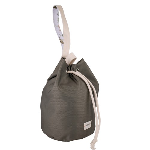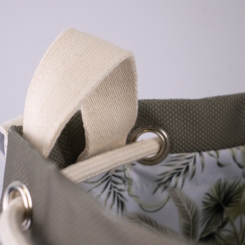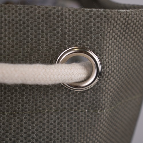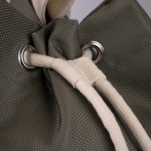 L’extérieur du sac est fait en polycanvas 350 gr et l’intérieur en polyester imperméable 235 gr. Certifié OEKO-TEX 100. Sangle en coton et polyester imperméable. Cordons en coton.