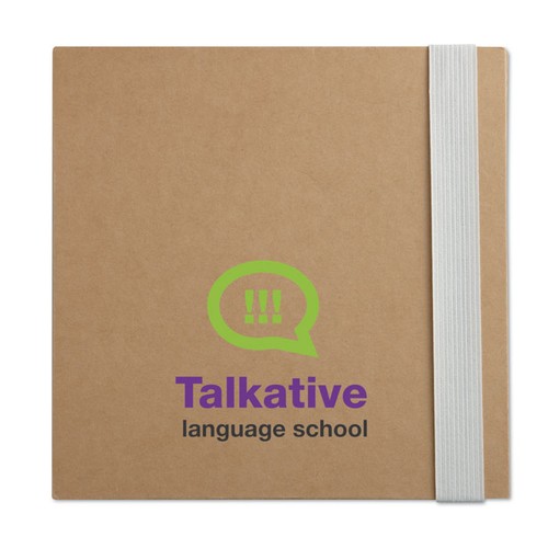 Carnet de notes avec couverture en carton recyclé. Bloc-notes de 100 feuilles unies. 3 Blocs de notes adhésives en papier recyclé. Blocs d’adhésifs jaunes grand et moyen et marqueurs de 5 tailles assorties. Stylo à bille à bouton-poussoir assorti avec corps en papier. Porte-stylo. Fermeture par bande élastique.