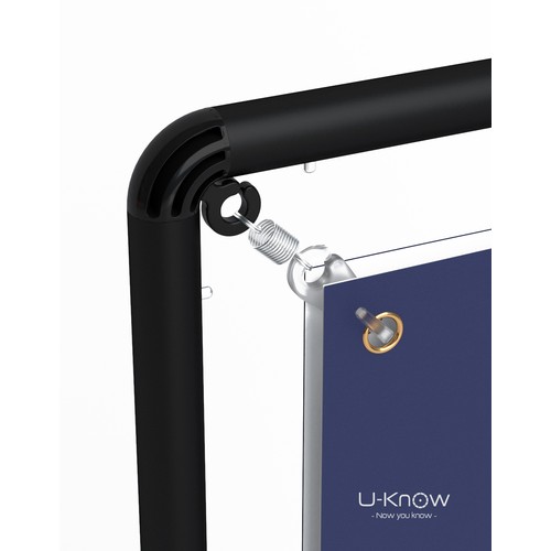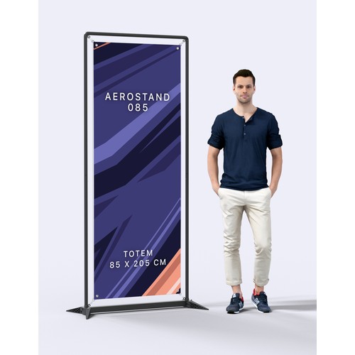 Les deux options sont disponibles en impression recto seul ou recto/verso. La housse imprimée en France recouvre la structure en aluminium. Quant à l’affiche en bâche, elle se fixe grâce aux œillets aux quatre coins et laisse apparaitre la structure noire.