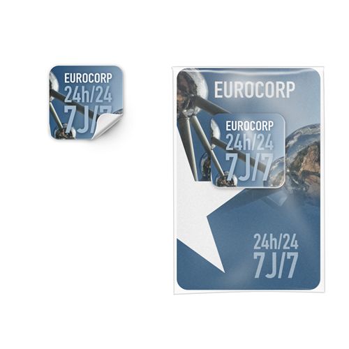 Chaque sticker est accompagné d’une cartonnette de 300 gsm, personnalisée en quadri au recto-verso, garantissant une visibilité optimale.