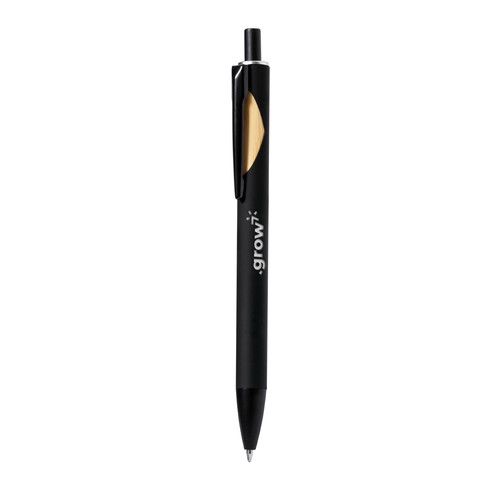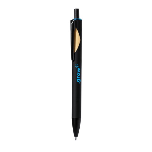 Stylo à bille à bouton-poussoir avec corps de finition solide en noir et détails supérieurs dans une gamme de couleurs variée. Clip métallique noir avec détail en bambou. Spécialement conçu pour le marquage laser et avec un revêtement extérieur spécial pour que votre publicité soit parfaitement gravée et assortie. Encre bleue. Présenté dans un sac individuel recyclé.Des matériaux tels que le bambou encouragent l’utilisation de matières premières naturelles en réduisant les émissions polluantes. Il provient d’une plante très résistante et polyvalente, avec une croissance et une régénération rapides, étant une excellente alternative à l’utilisation du bois traditionnel.