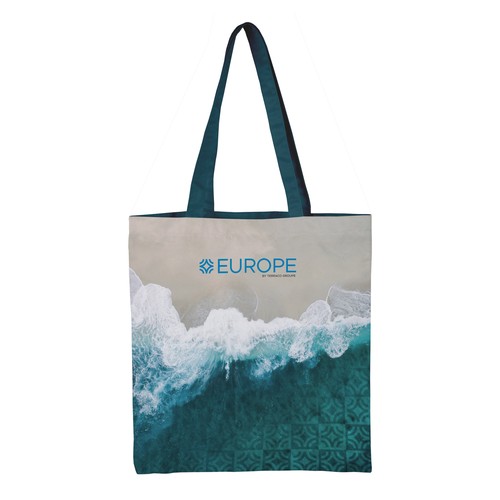 Tote bag format portrait en polycoton blanc 220 gr sublimé. Certifié OEKO-TEX 100