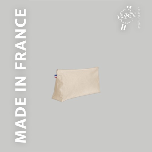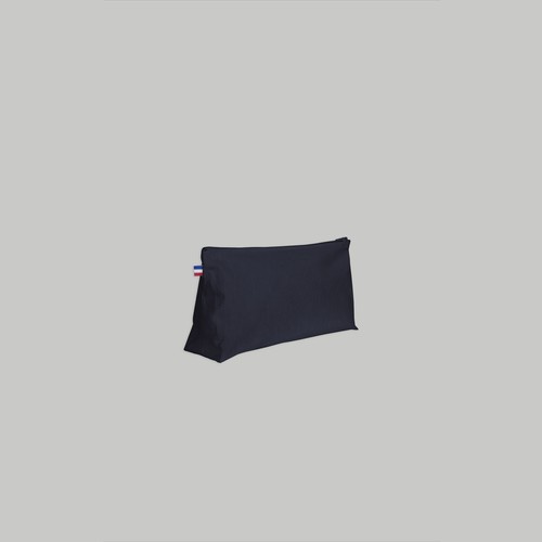 Trousse avec soufflet, zip raccord avec le coloris de la toile, détail tricolore côté haut.