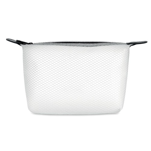 Trousse de toilette en maille EVA transparente avec fermeture à glissière noire.