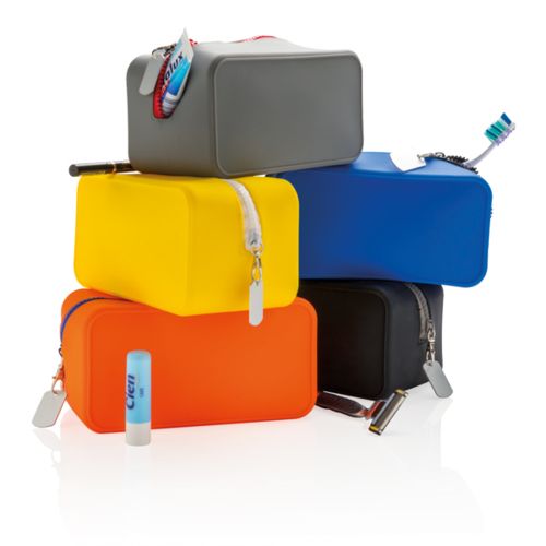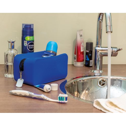 Trousse de toilette en silicone ce qui la rend unique dans son genre. Le silicone est étanche, résistant à la chaleur et antidérapant. Il évite les renversements dans votre valise et est facile à nettoyer. Dimensions : 19x10x10 cm.