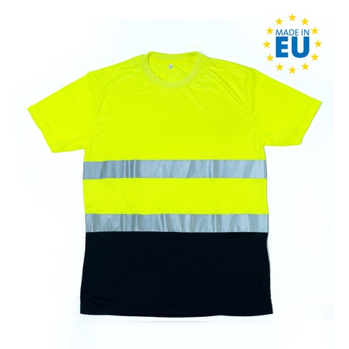 Tee shirt manches courtes haute visibilité avec bandes réfléchissantes. Fabrication Portugal